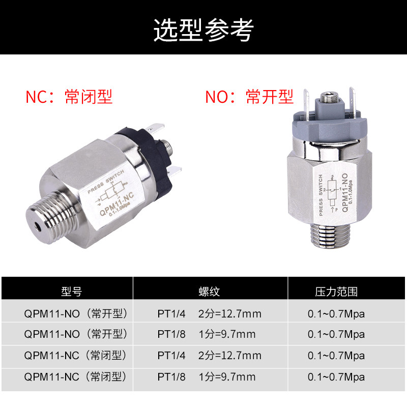 QPM11-NO NC pneumatic pressure switch automatic diaphragm type air pressure adjustable pressure air compressor switch controller
