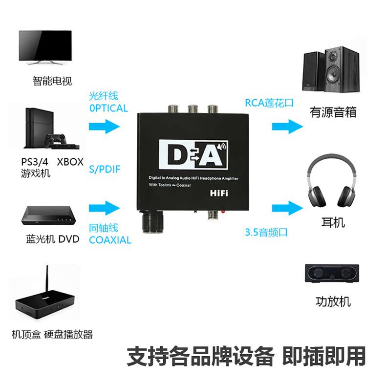 Digital fiber coaxial transanalog audio conversion decoder Leview Xiaomi TV PS4 to pick up 3 5mm headphones