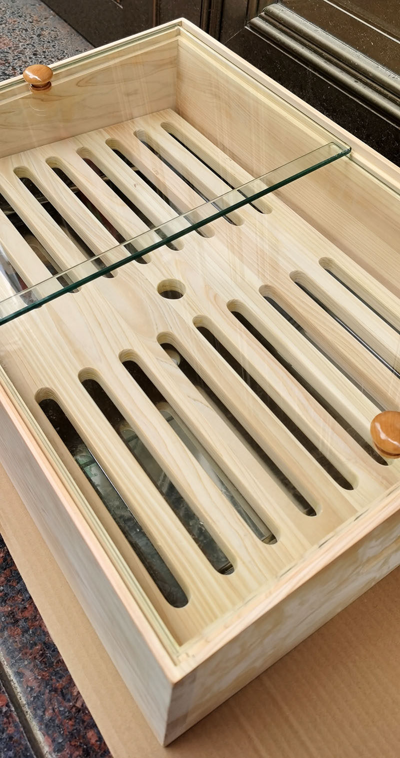 Japanese restaurant cypress display cabinet solid wood refrigerated Japanese teppanyaki meat sushi fish box baking custom furniture
