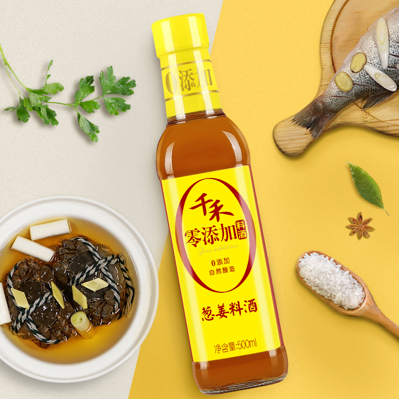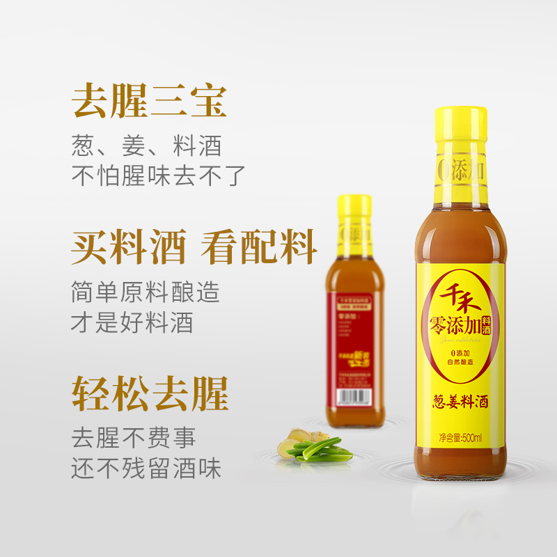 Qianhe zero-added onion ginger cooking wine 500ml * 2 bottles of grain brewing to remove the fishy taste and enhance the freshness of the seasoning wine
