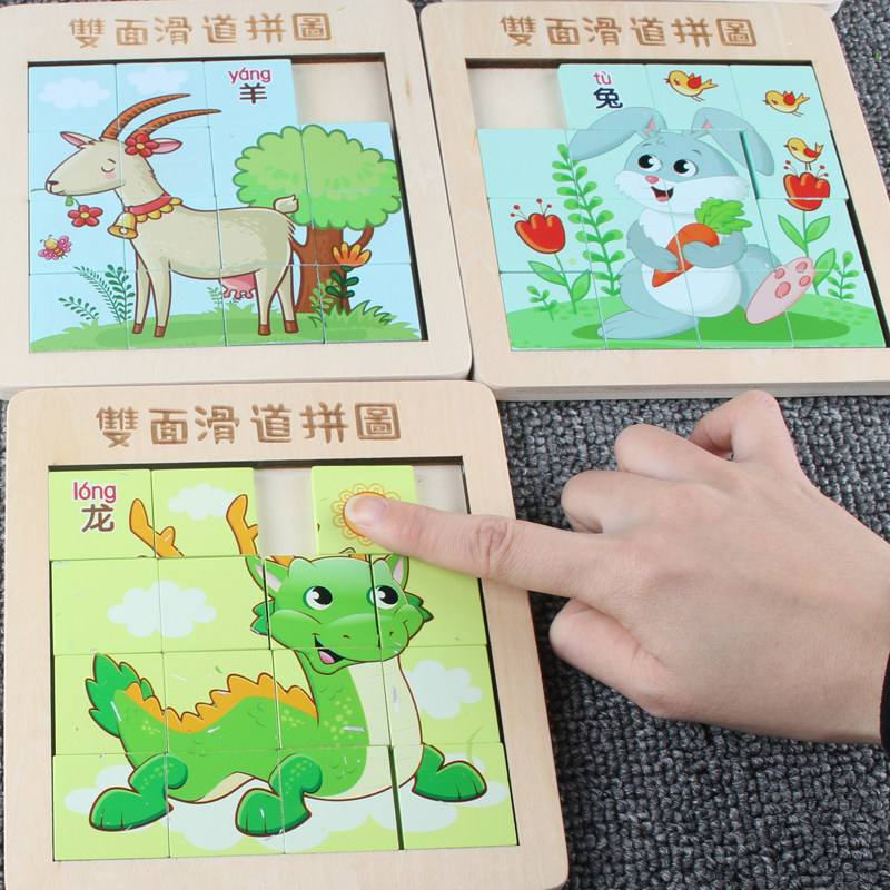 Zodiac Animals Huadong Road Sliding Puzzle Children Puzzle Toys Brain power Development Jigsaw Puzzle Wooden