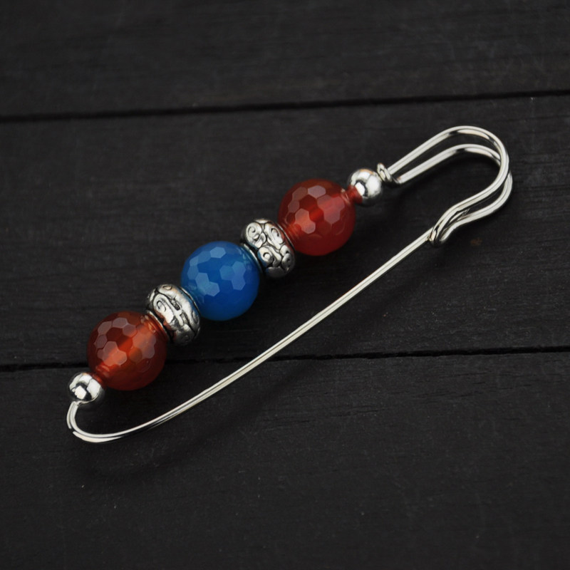 Retro original handmade lettering blue red Manau brooch with a fur coat scarf, Japan-ROK trendwomen's life-of-the-year ornament