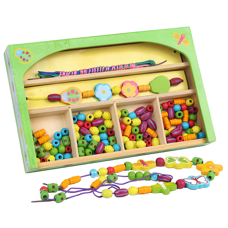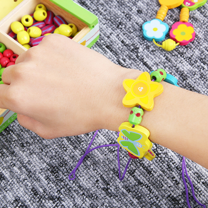 Children's wooden beaded toys children's handmade diy materials to make educational girls bracelet necklaces wearing beads