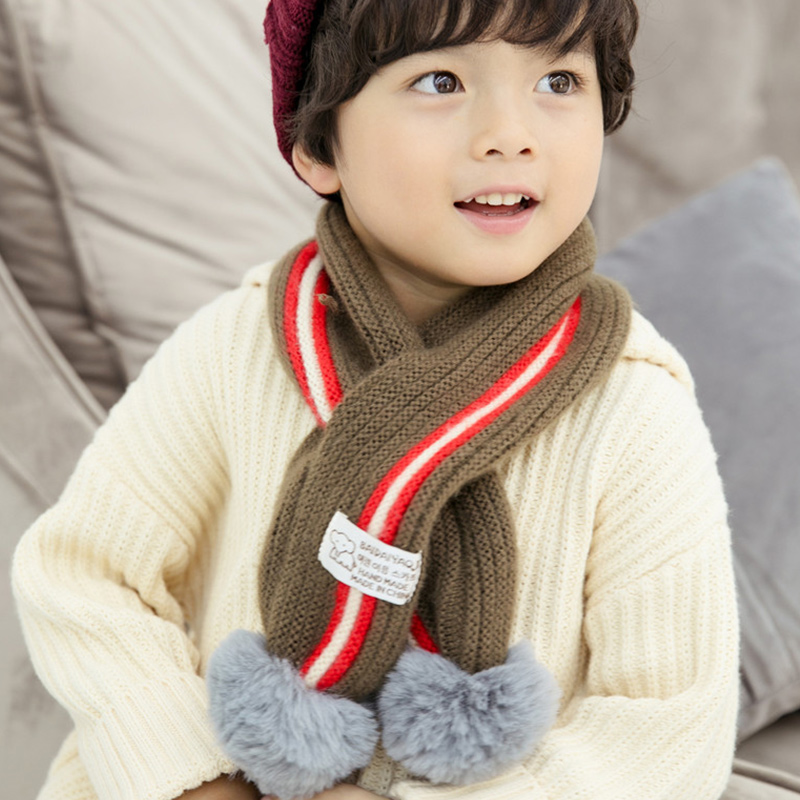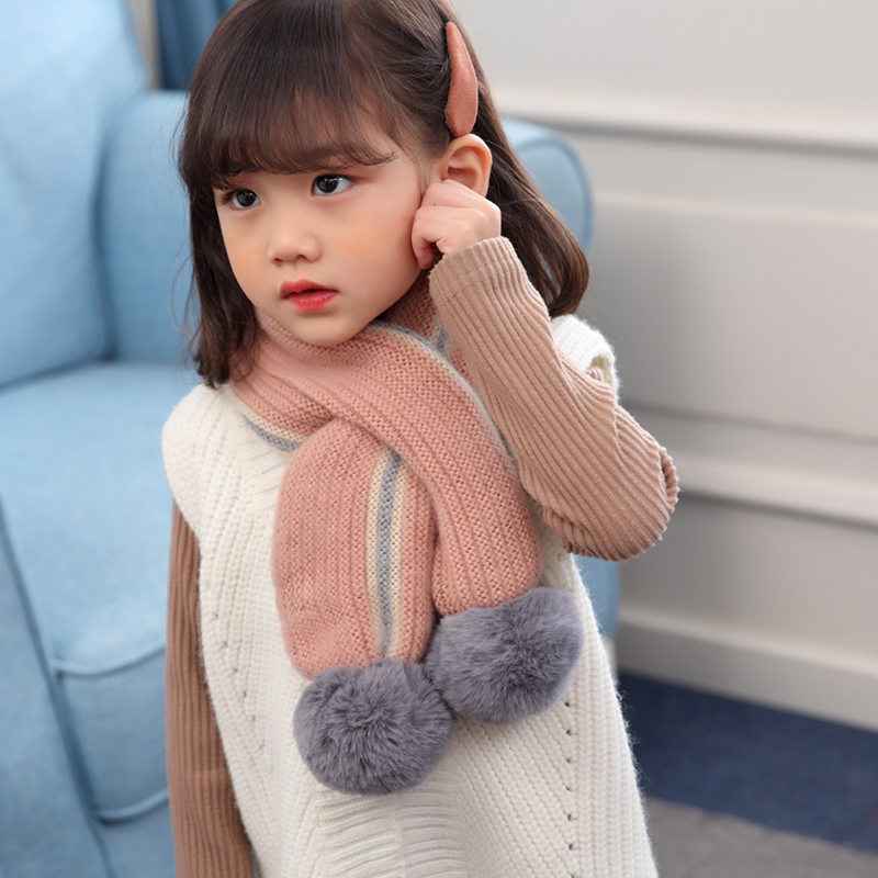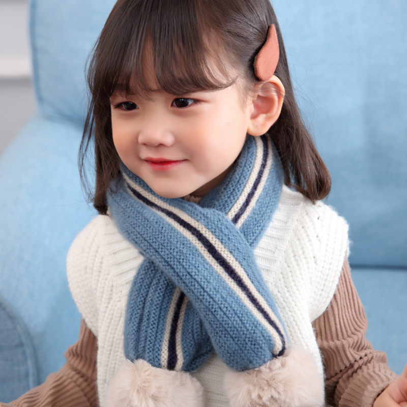 Korean winter new knitted cross warm neck cover Striped hair ball Men's and women's children's neck Children's scarf