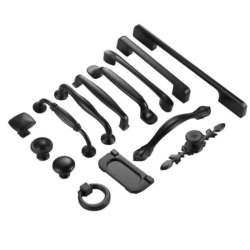 Modern minimalist black handle overall cabinet wardrobe door handle cabinet drawer hidden handle single hole pull ring cabinet door handle