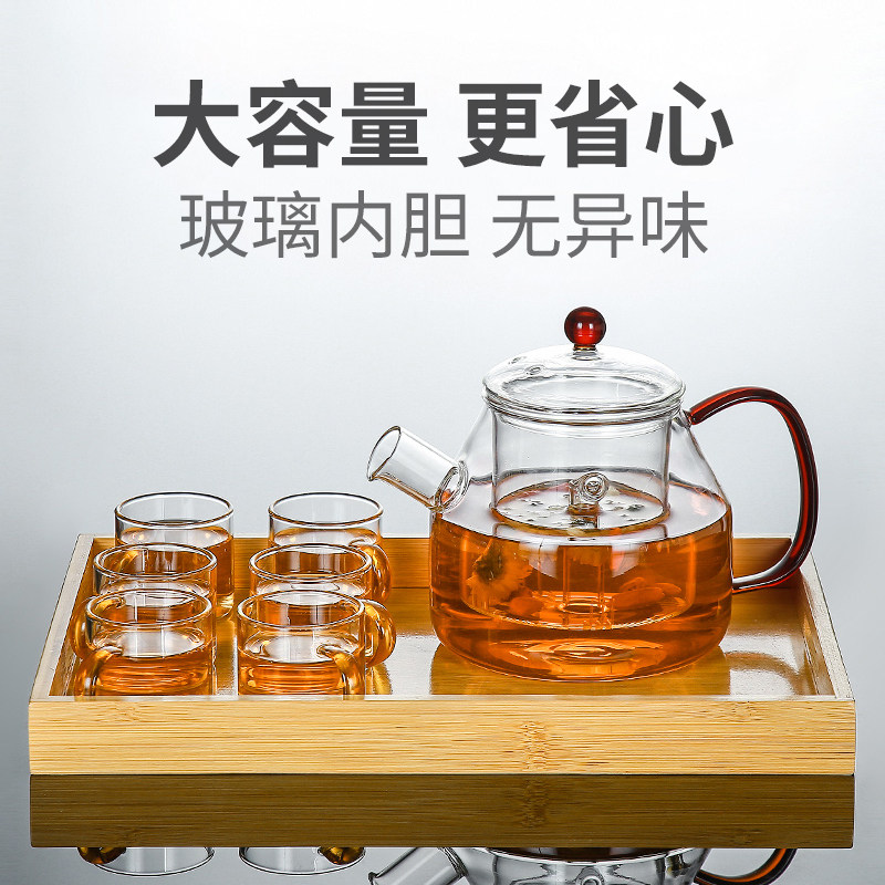 Flower teapot glass brewed fruit teacup set household flower teacup tea cup tea maker high temperature heating afternoon tea tea set