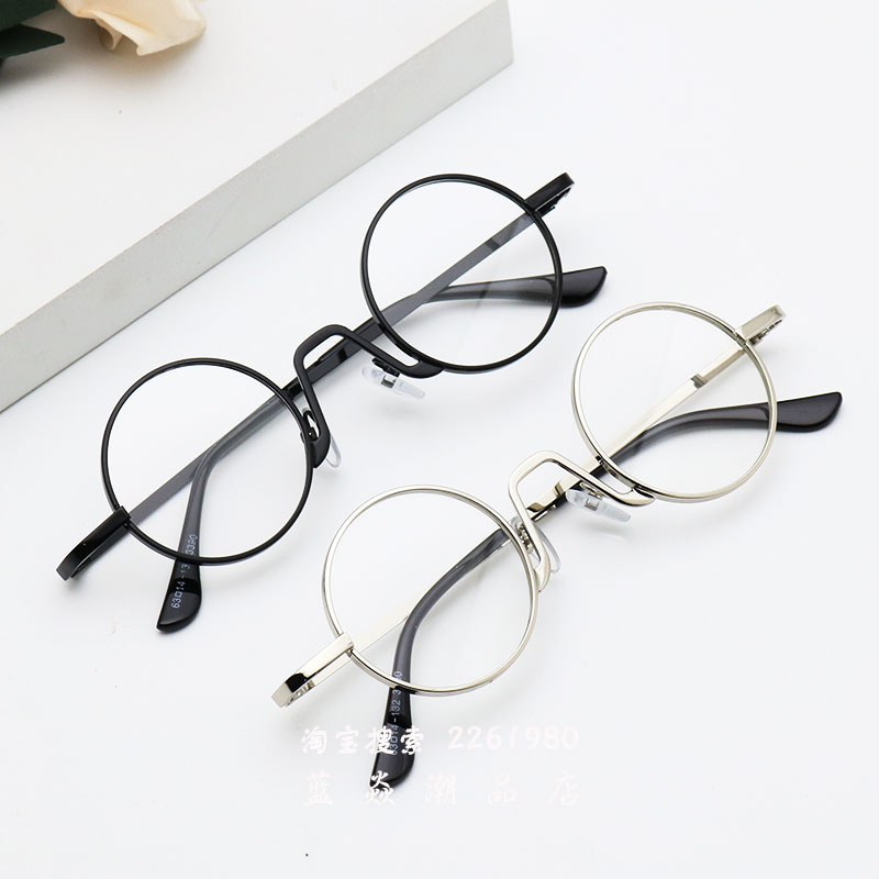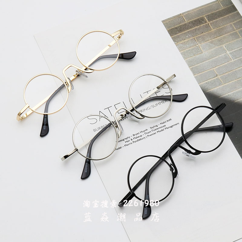 Retro round glasses with chain net red small frame myopia glasses male Korean version tide Harajuku wind round face flat mirror