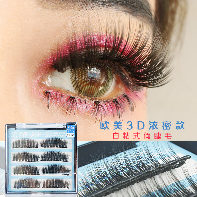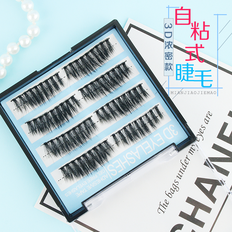 Self-adhesive glue-free false eyelashes 3D three-dimensional multi-layer natural thick European and American stage glue-free hypoallergenic Qiaomu Square