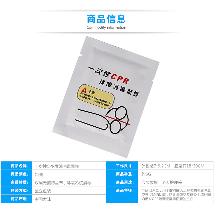 Red Cross Disposable CPR Training Barrier Disinfection Mask Cardiopulmonary Resuscitation Mask Artificial suction mask