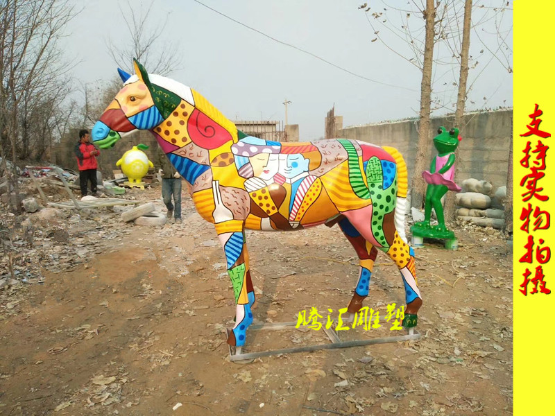 Horse Sculptures Painted Horse Sculptures Simulation Horse Pendulum Pieces Landscaped Glass Fiber Sculptures Large Horse Real Estate Community