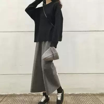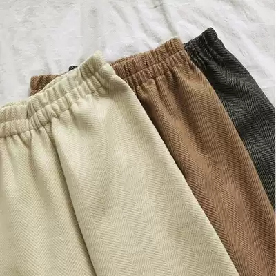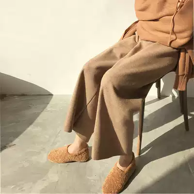 Hairy wide leg pants women autumn and winter high waist thin retro loose lazy casual thick ankle-length pants straight wide pants