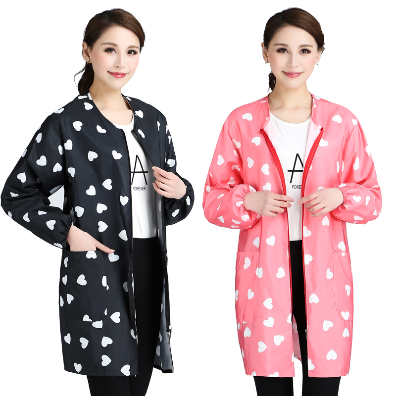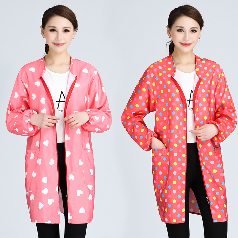 Apron gown adult female spring and autumn Korean fashion kitchen waterproof and oil-proof clothing long sleeve big coat work clothes
