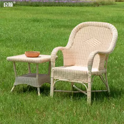 Liangshun natural rattan chair single backrest chair Living room coffee table Balcony outdoor leisure woven table and chair three-piece set