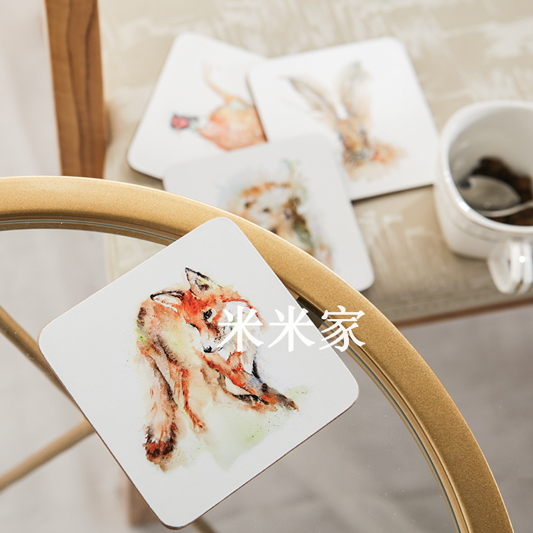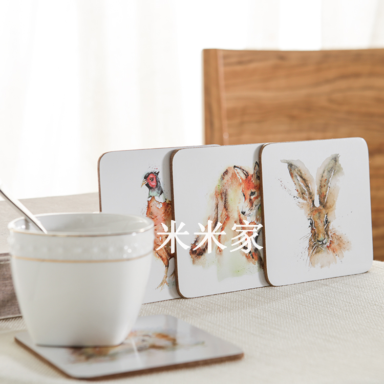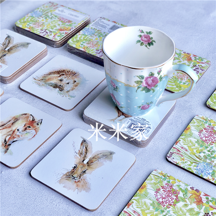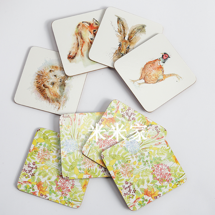 Export British single ~ animal forest decorative painting cork waterproof tea coaster anti-scalding pad heat insulation coaster 4 pieces