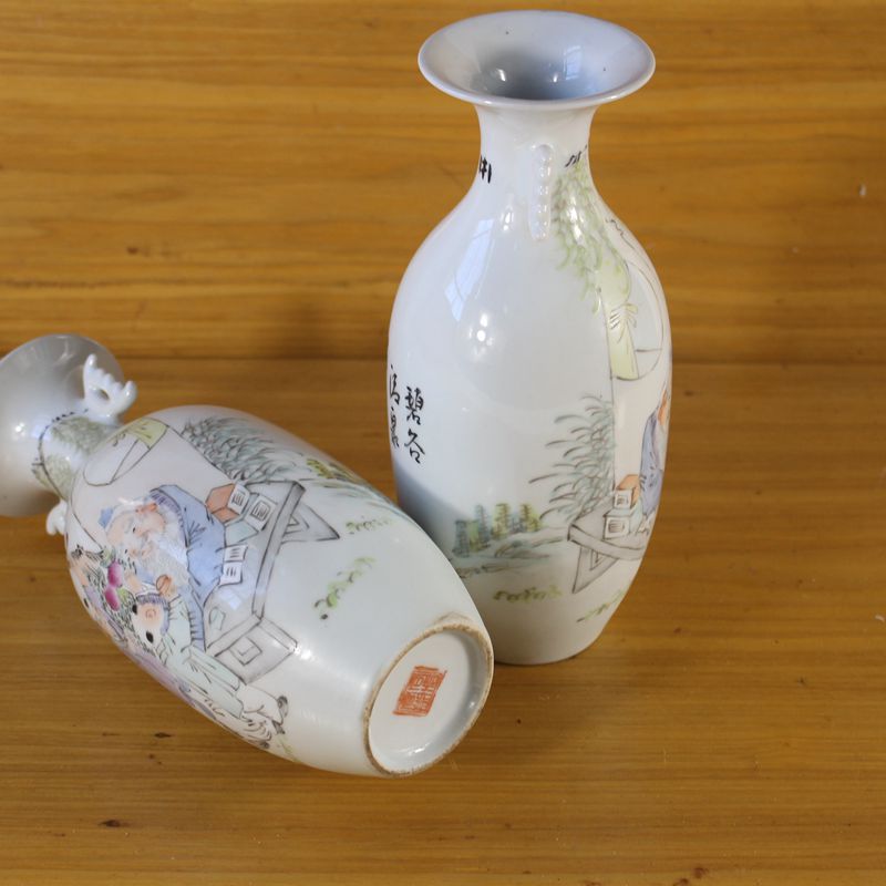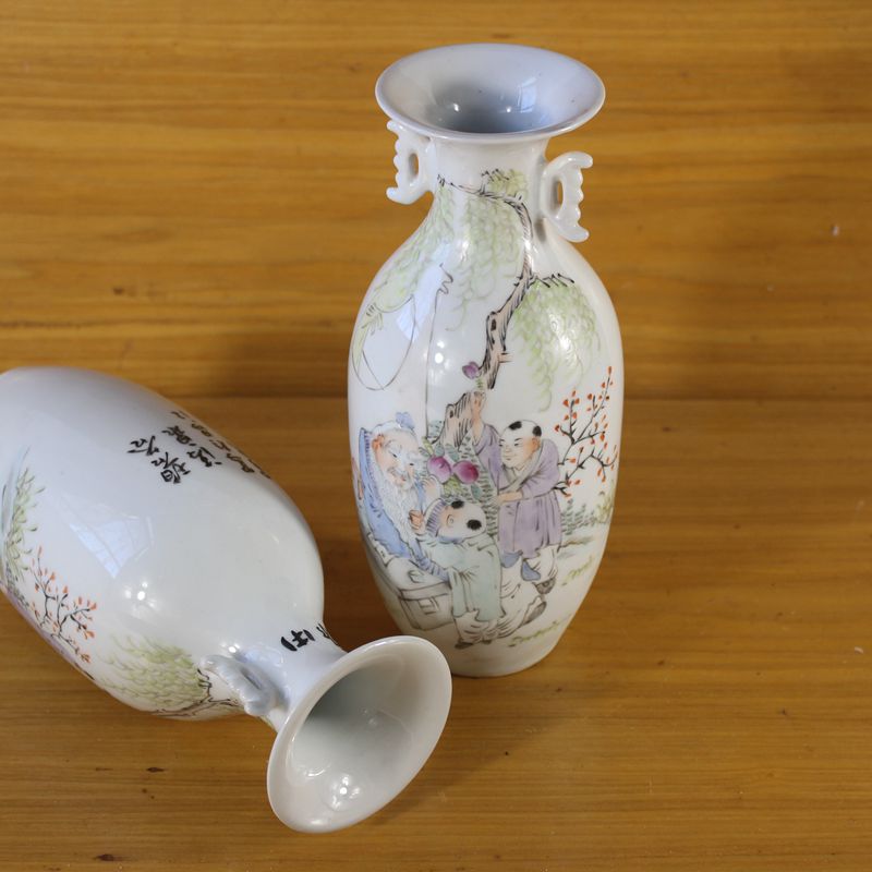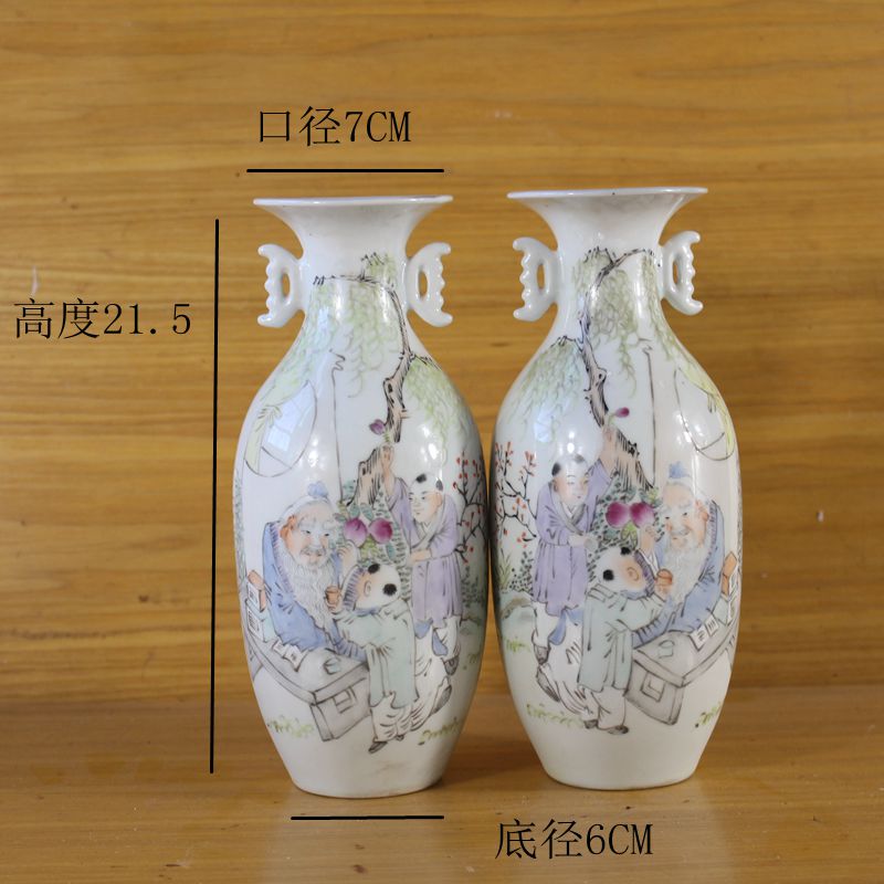 Jingdezhen antique porcelain Tongzhi hand-painted pastel figure pattern vase pair of antique antique collection ornaments