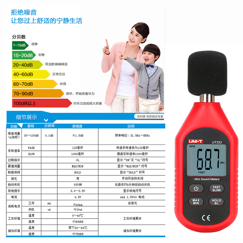 Ulieder Noise Meter Detection Decibel Noise Tester Sound Instruments Detect Home Measuring Instruments Sound Level Gauge