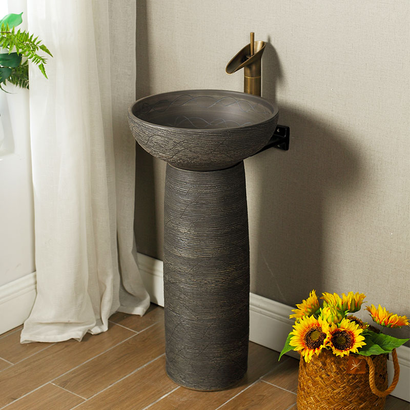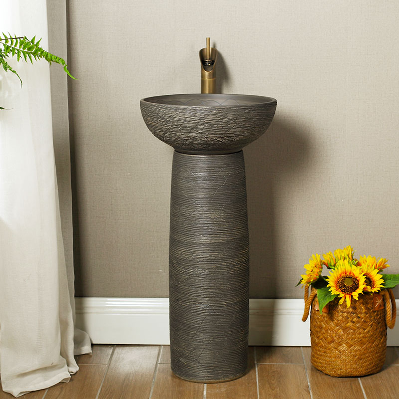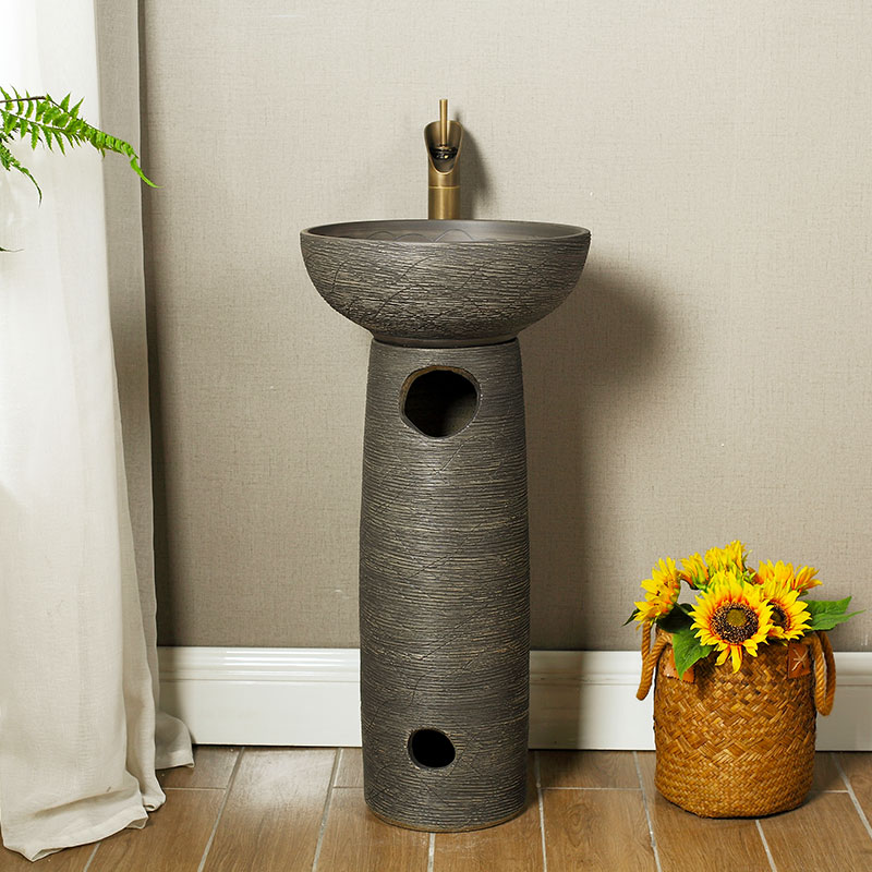 Ceramic column basin integrated wash basin Home small apartment type floor-to-ceiling washbasin bathroom column basin antique