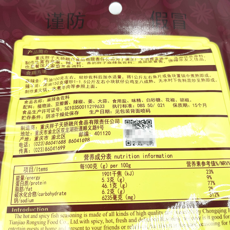Chongqing special produce Fat Fatty Spicy Fish Seasoning 180g * 5 Bags Water Boiled Fish Seasoning Sichuan Hot Pot Fish Fatty fish bottom stock
