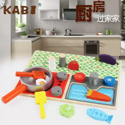 Wooden kitchen play house wine simulation kitchen Wooden toys fun realistic pot combination cooking set