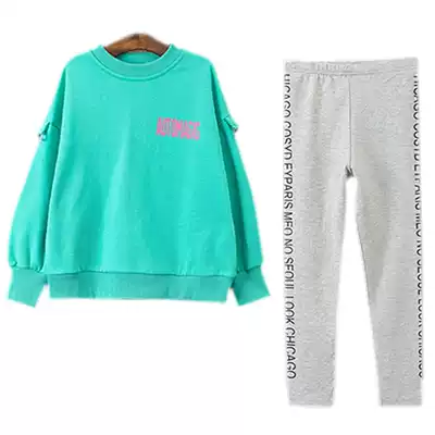 2021 Autumn New Korean version of foreign school girl thick T-shirt set medium and long version of Top pants two-piece suit