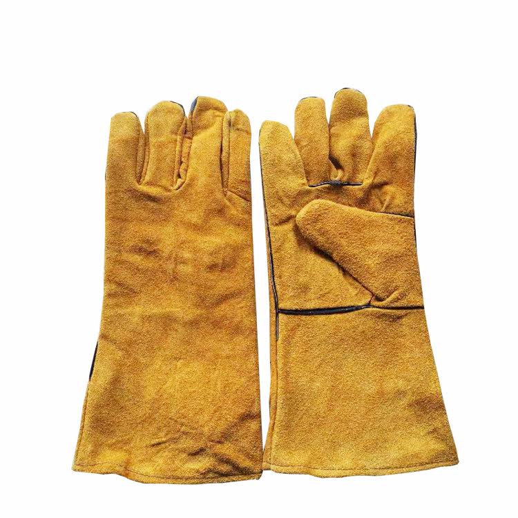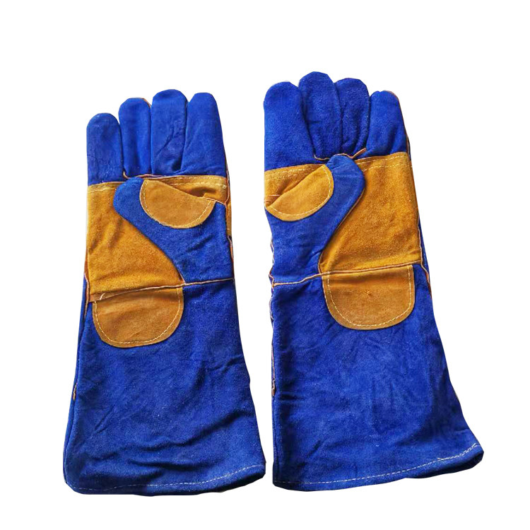 Two-floor thickened cow green leather electric welding gloves ox neck leather A level lengthened electric welding refute welding fireproof thermal insulation gloves