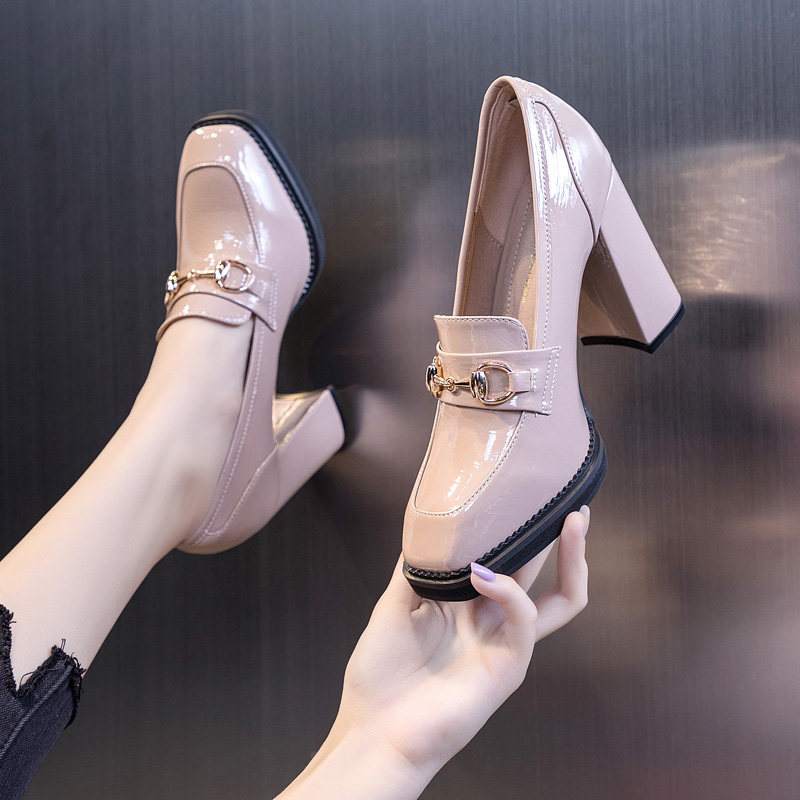 High-heeled women's shoes thick heel 2021 new spring and autumn Joker small leather shoes British autumn deep-mouth single shoes heel