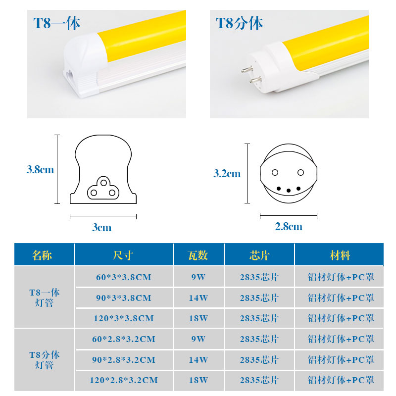 T8 anti-UV Anti-UV No UV LED tube Dust-free workshop with yellow yellow explosion-proof fluorescent lamp