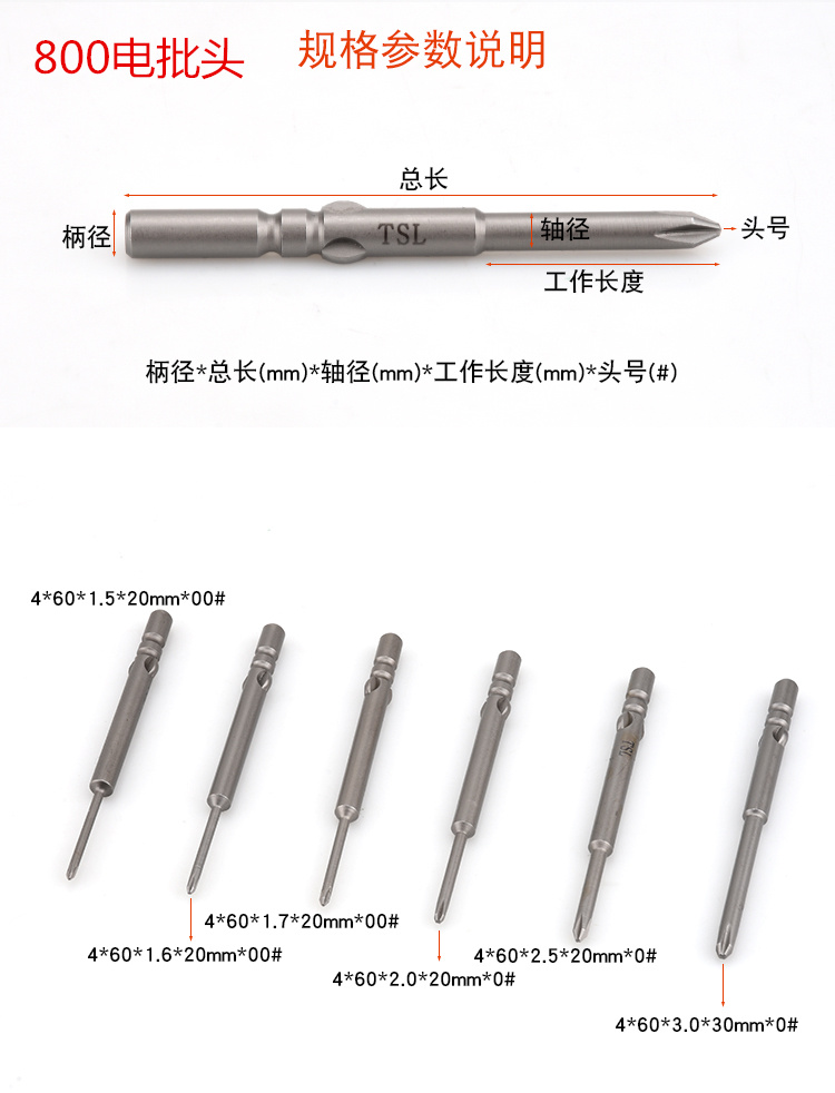 TSL electric screwdriver head 800 electric screwdriver mouth 4*60*1 6-4 0mm screwdriver S2 plus hard heat treatment 10
