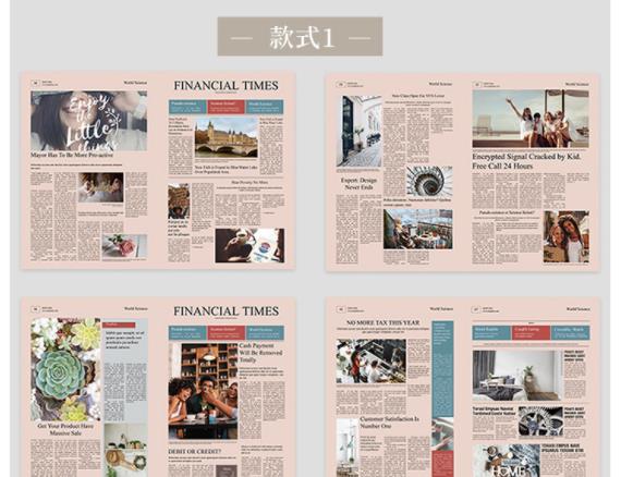 Two English newspapers in light pink, two English newspapers in primary color