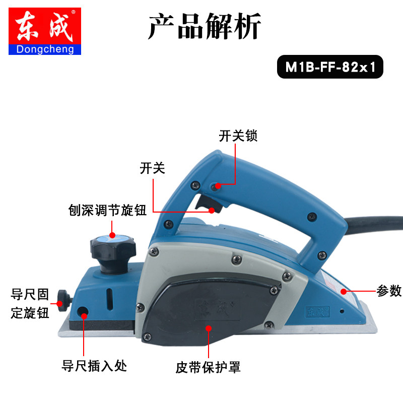 Dongcheng electric planer M1B-FF-82*1 household woodworking planer multi-functional portable handheld promotion Dongcheng F02