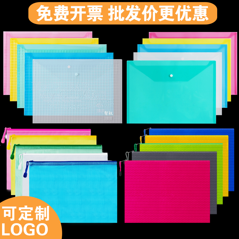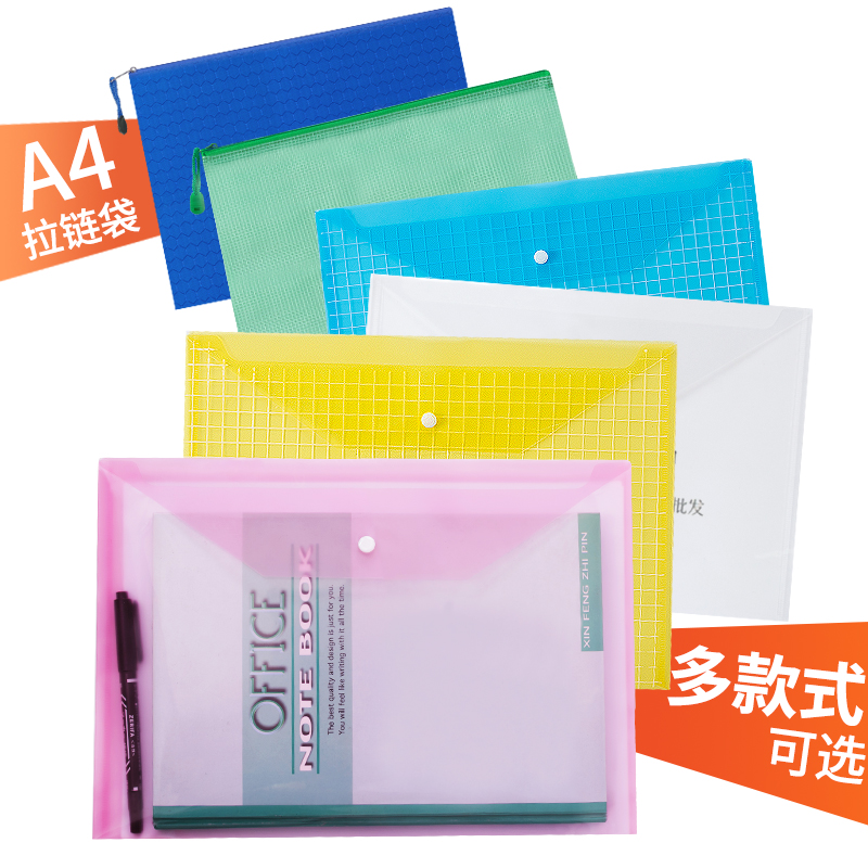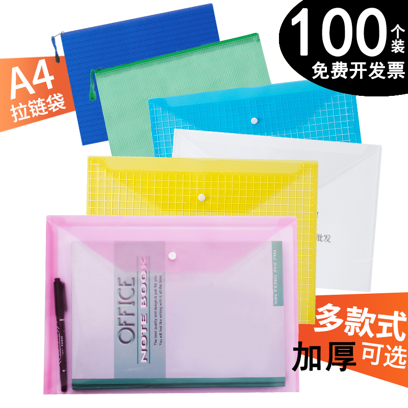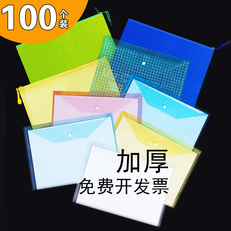 100 16C thick color transparent A4 file bag file bag storage bag plastic waterproof 18C button bag button bag student student supplies white test paper storage bag stationery bag