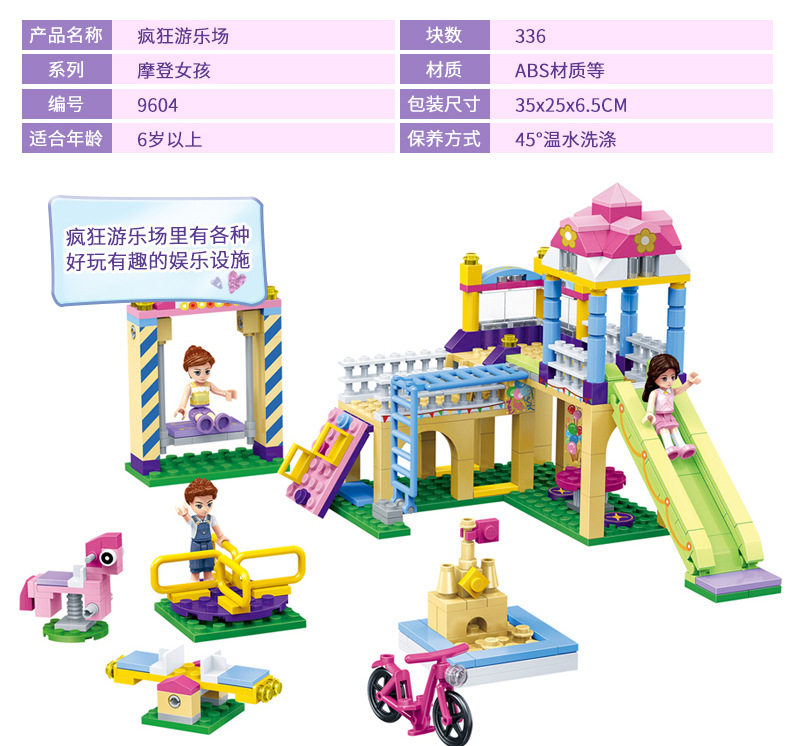 Goody compatible Lego assembly building blocks children puzzle toys Moden girls Princess Crazy Playground 9604