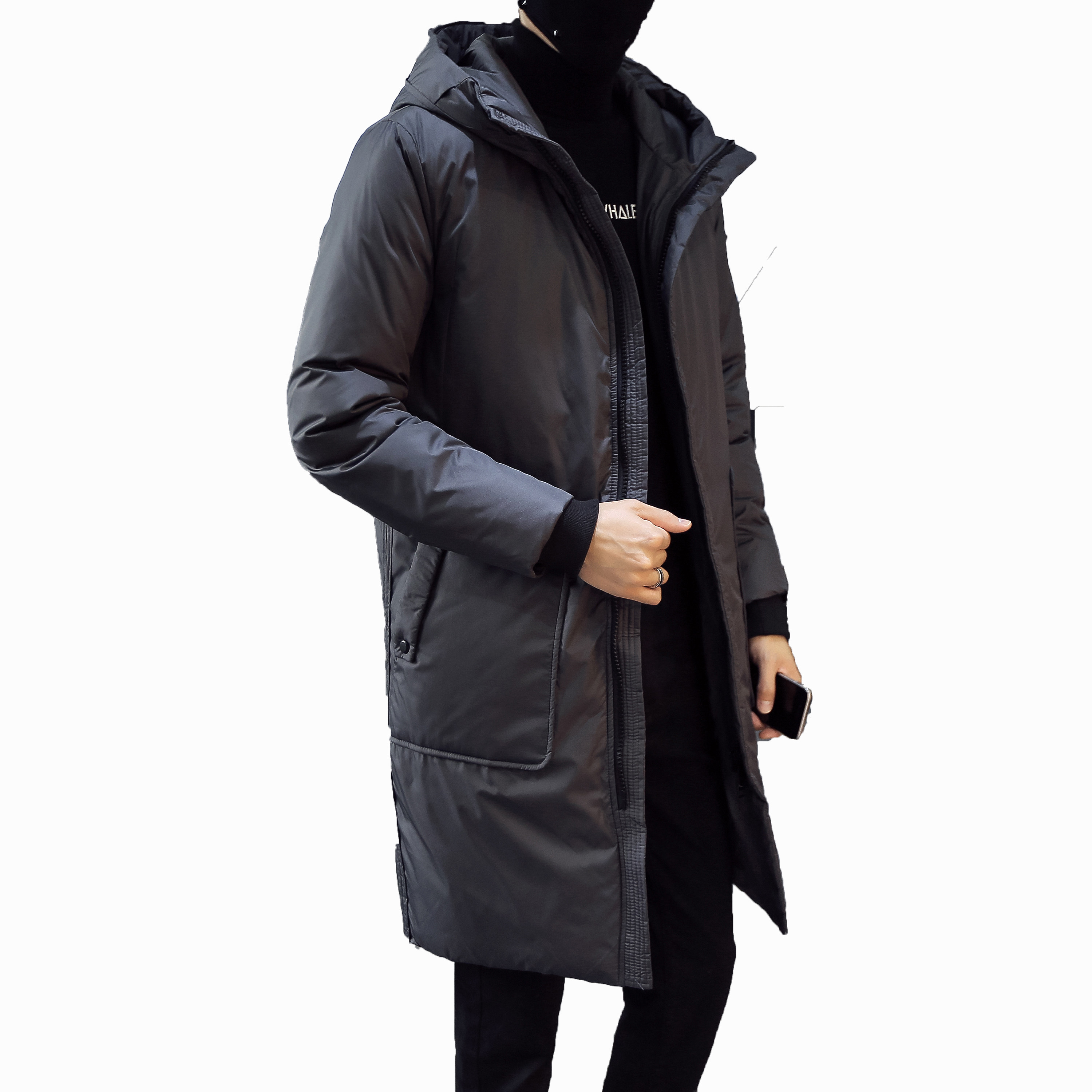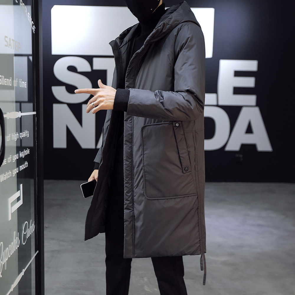 Winter jacket men's mid-length version with cap thickened warm cotton clothes youth handsome with kneecap cotton suit new trendy jacket