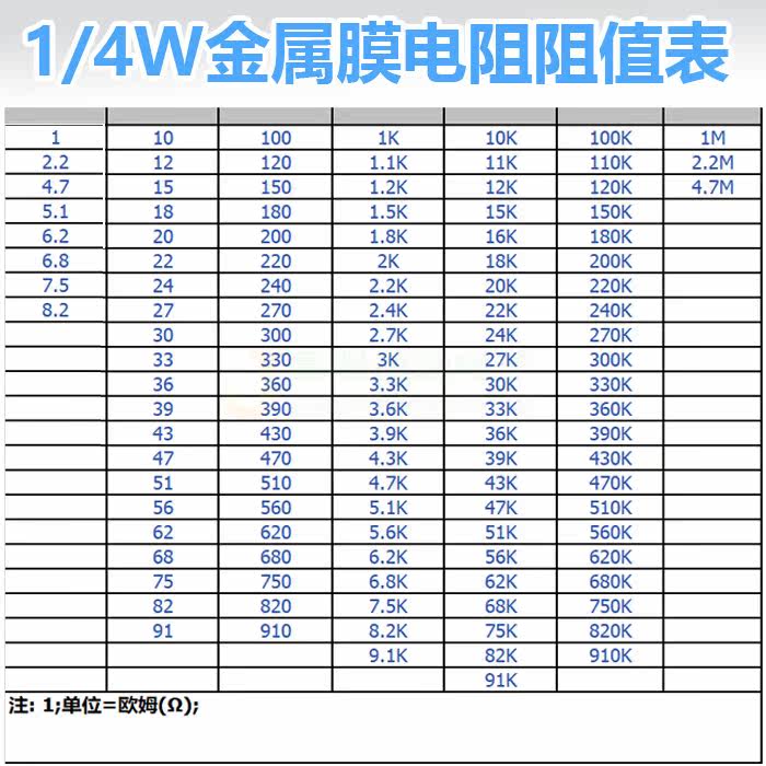 5 resistance values are mixed with 20 each (100 in total) and one resistance value. Please note the resistance values (100) 1 Ω 100 2 Ω 100 4 7 Ω 10