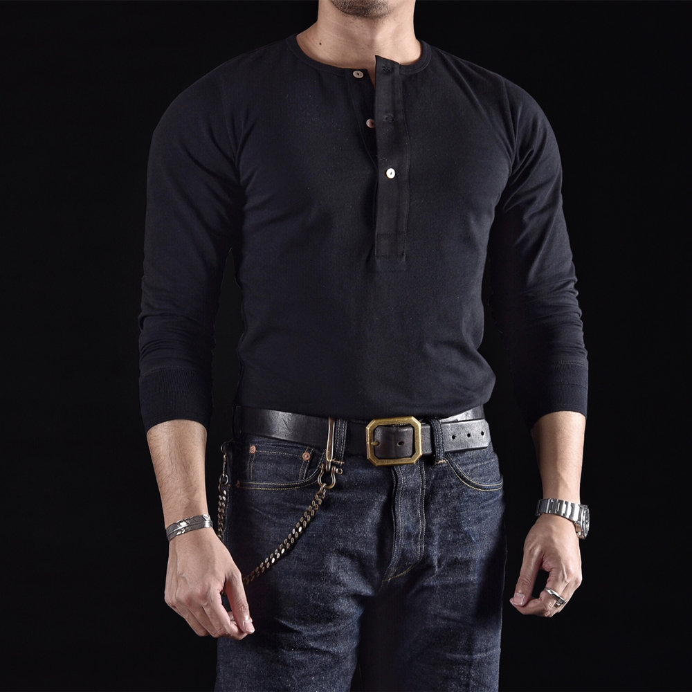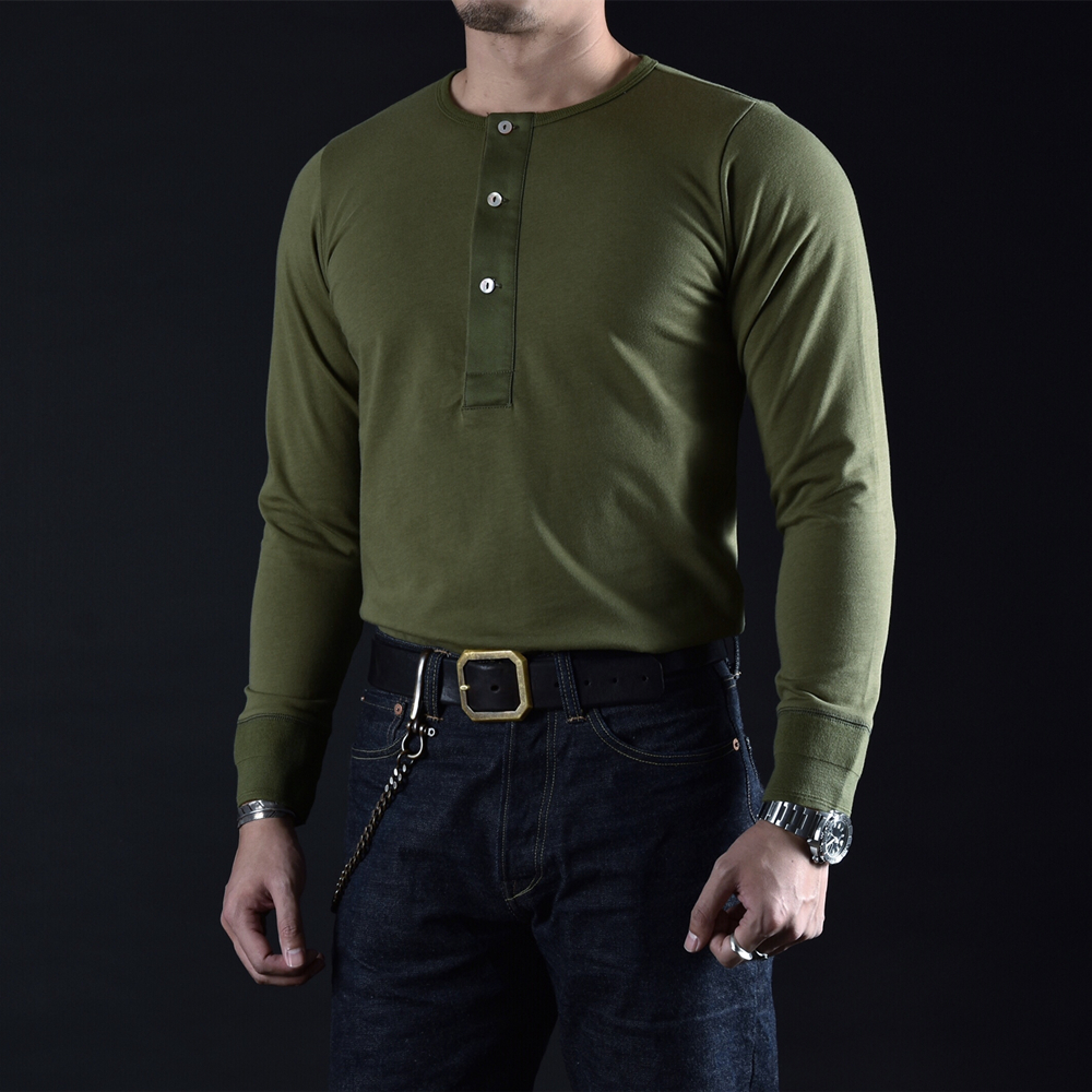 Chai Mi American retro long-sleeved Henry collar T-shirt slim-fit locomotive autumn and winter Ami Khaki
