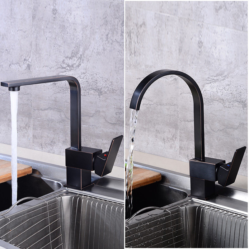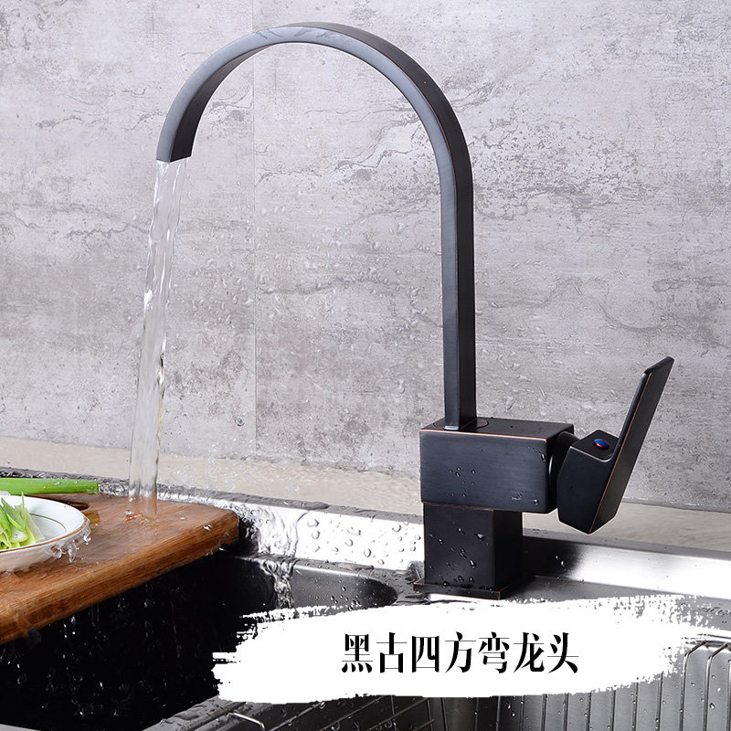 Black ancient square kitchen faucet Black ancient square curved kitchen faucet