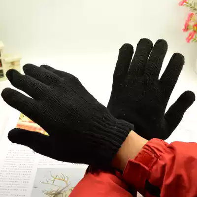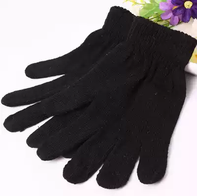 Autumn and winter wool knitting pure black men's and women's half-finger full-finger gloves Black fingerless student writing cycling gloves