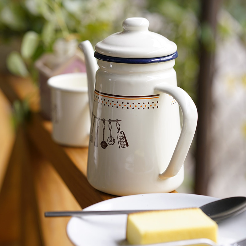 lifeface outdoor hanging ear hand-brewed coffee pot enamel enamel kettle Japanese-style cold kettle open fire teapot
