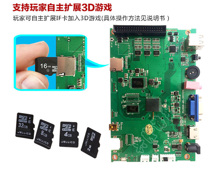 3D Pandora Treasures motherboard (2200 games) plus 32G-TF card to add 60 3D game treasure special power adapters Power cord treasure special 5P Sanhe rocker sleeves plus