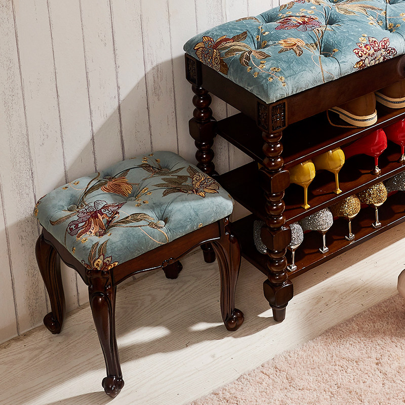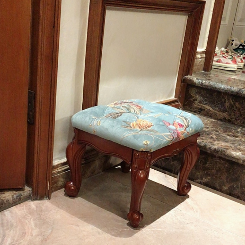 Stool home shoe changing stool American low stool round stool fabric coffee table stool solid wood makeup chair makeup stool square stool bench