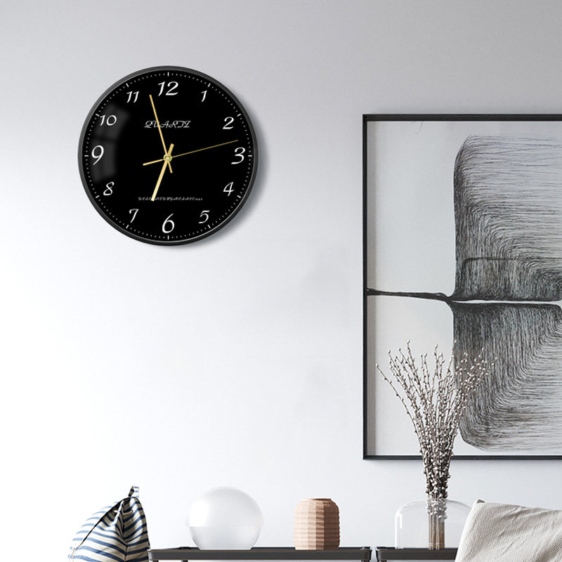 Modern minimalist light luxury white bottom black bottom scale digital Roman mute home living room bedroom office quartz wall clock