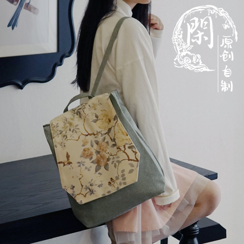 Leisure original full court Chinese national ancient style ink canvas backpack Hanfu women's bag bag Han elements large capacity