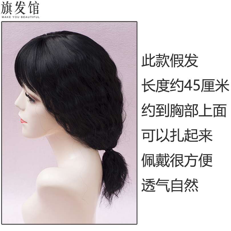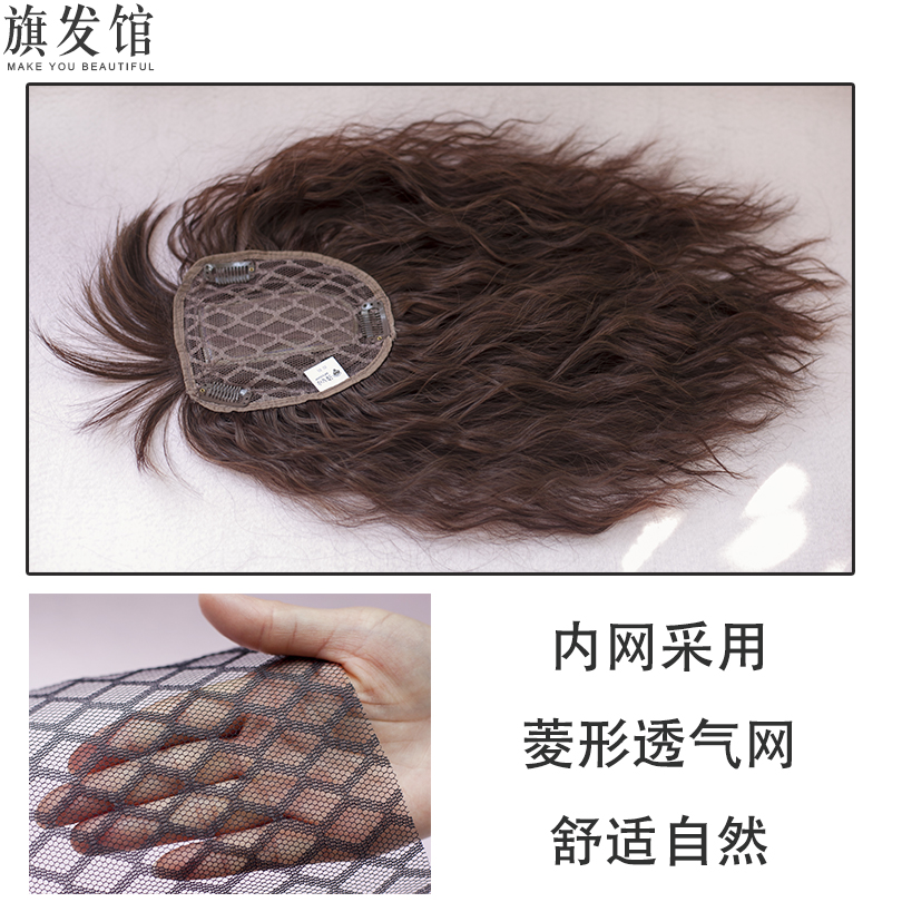 Corn hot medium long bangs wig simulation hair top reissue piece curly hair cover white hair lifelike slim woman