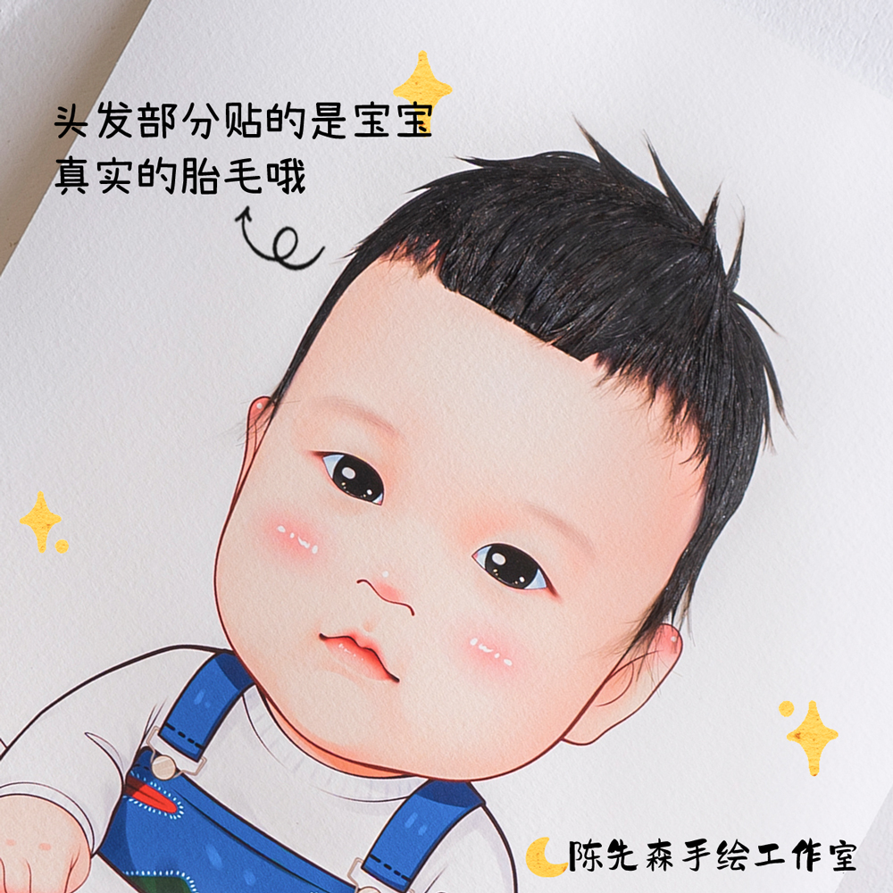 Baby fetal hair painting hand-painted head portrait set to make non-fetal brush stamp baby full moon diy homemade commemorative gift