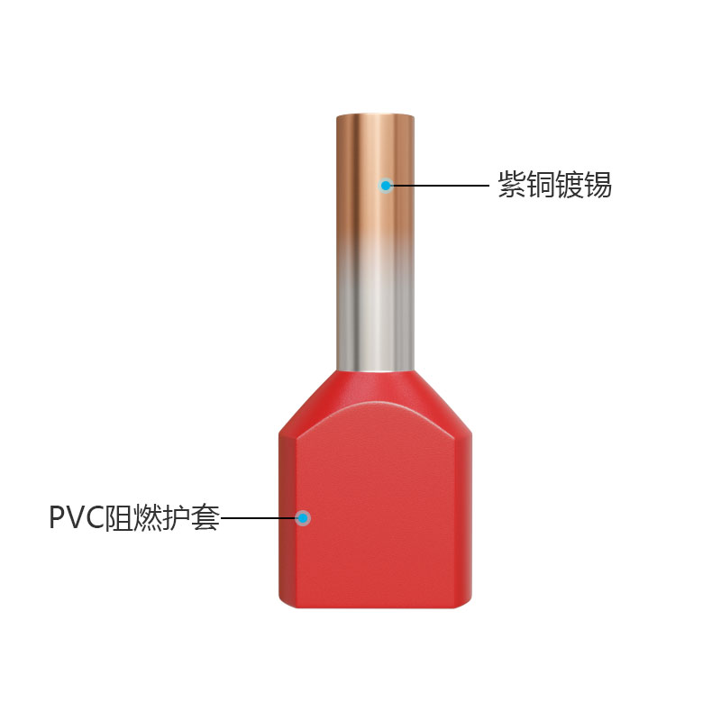 TE1008 Twin - line tube type pre - insulated terminal press terminal needle cold - pressed terminal copper nose