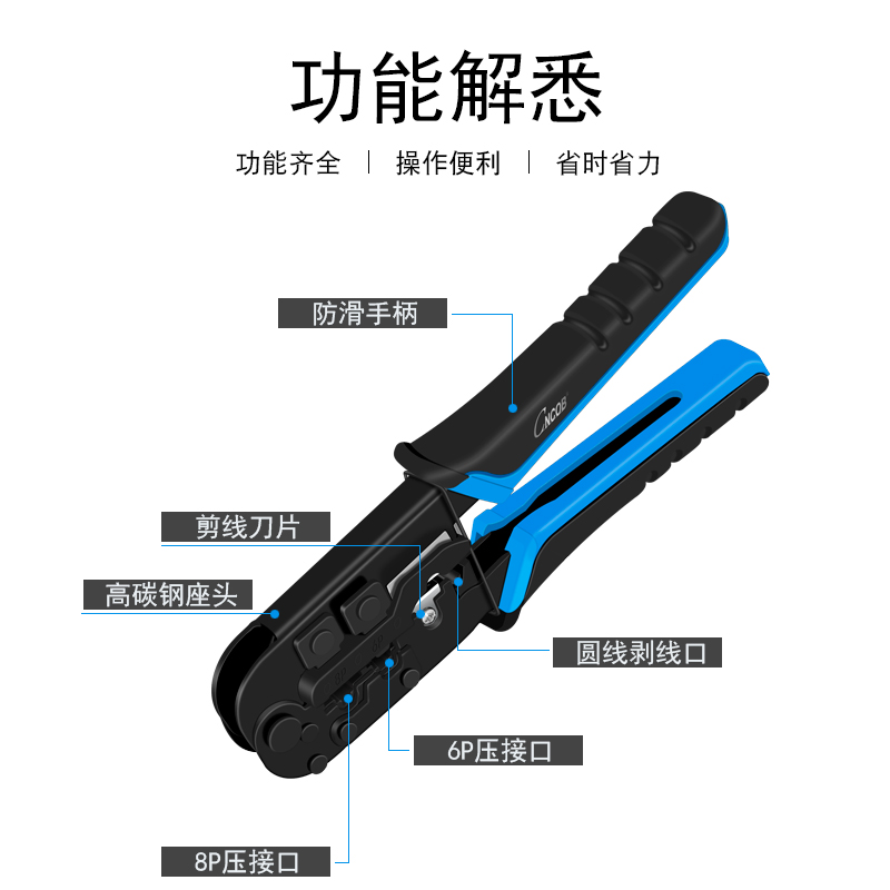 CNCOB professional grade three-purpose multi-functional network cable pliers 8P network crystal head crimping pliers 6P 4P telephone pliers