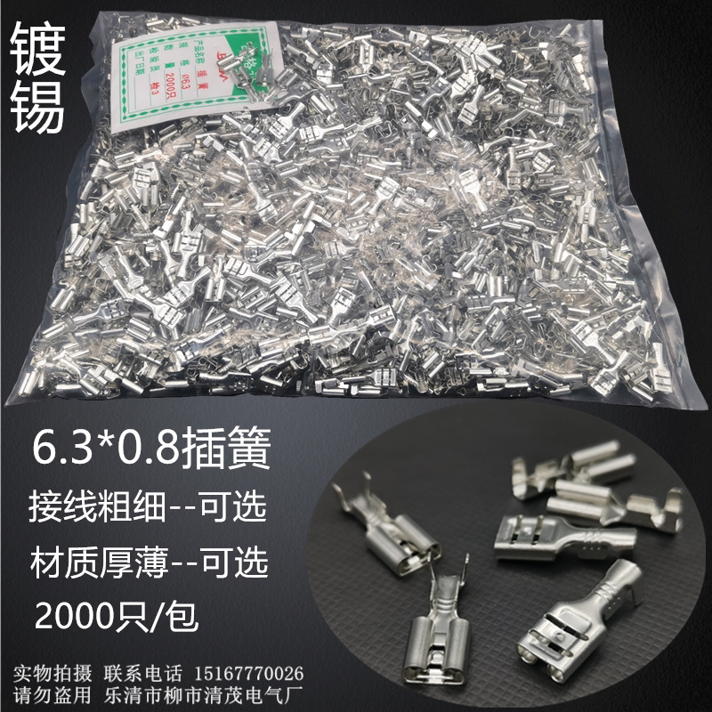 6 3 spring terminal 250 spring terminal thickened copper 6 3*0 8 spring cold-pressed terminal 0 3 0 4 thick
