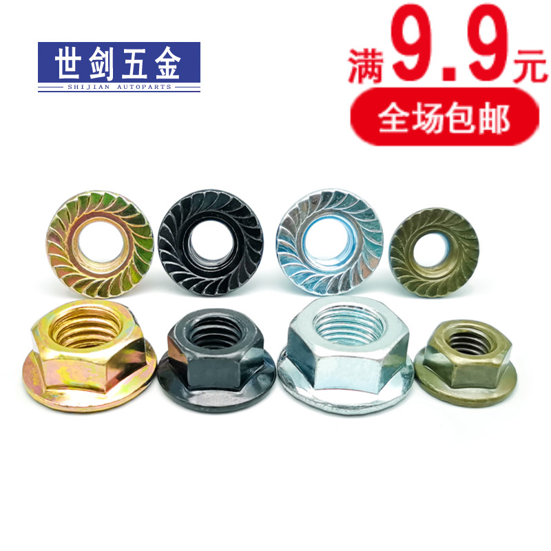 8 Grade 8 GB6177 galvanized hexagon flange nut with pad flower teeth anti-loosening nut M3M4M5M6M8M10 non-slip