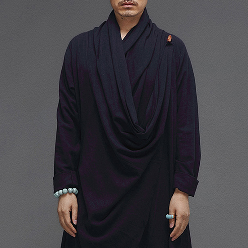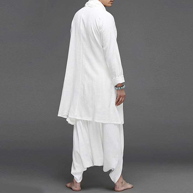 Chinese style cotton linen Hanfu male ancient style loose lay House meditation tea suit retro ethnic cloak men's clothing