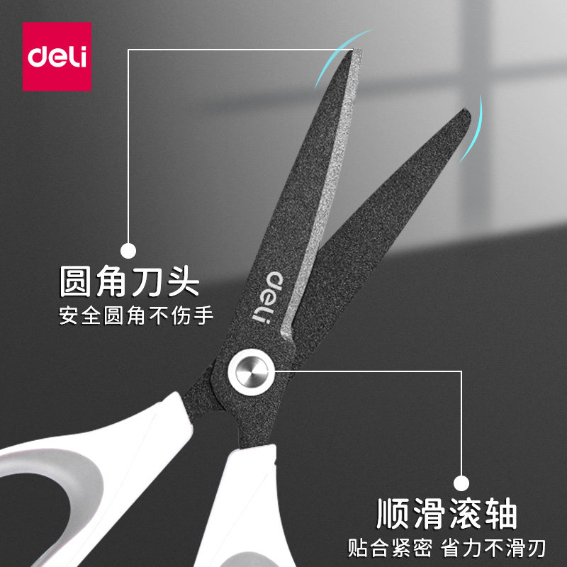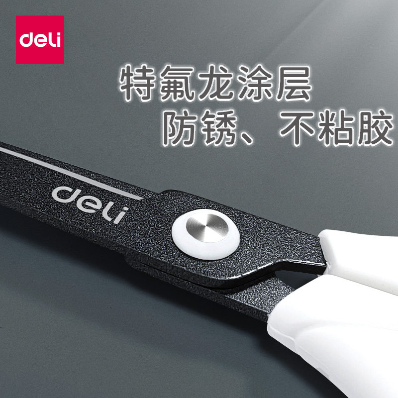 Deli Teflon coated scissors convenient manual round head anti-stick scissors office students with alloy stainless steel industrial grade thickened large household kitchen multifunctional scissors do not stick